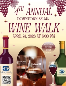 The Selma Elementary PTCO is bringing you the Town of Selma’s 4th Downtown Wine Walk event on April 24th! Wine by Hinnant Family Vineyards!