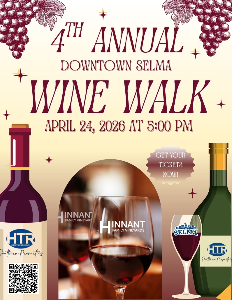 To purchase tickets: 4th Annual Selma Wine Walk Tickets, Friday, Apr 24 from 5 pm to 9 pm | Eventbrite